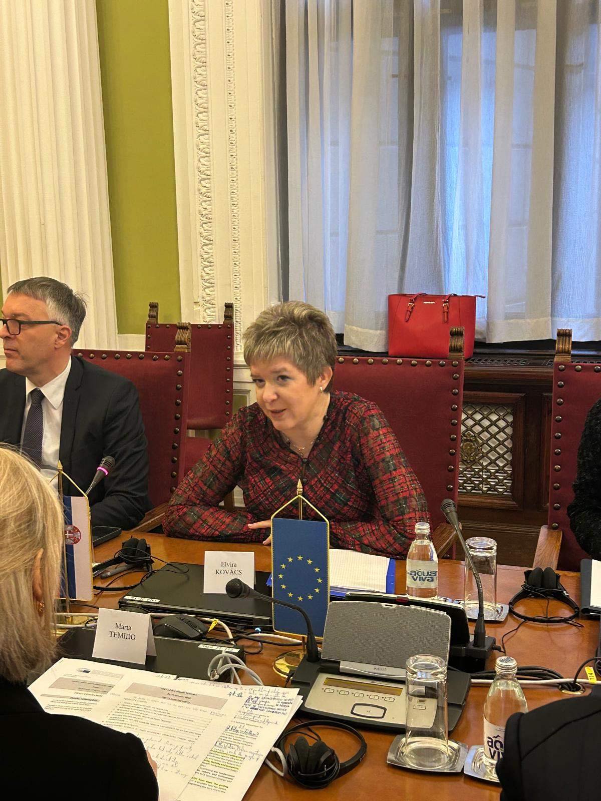 Потпредседница Е. Ковач је најпре, као велики заговорник европских интеграција Србије, истакла важност дијалога и изразила наду да ће сарадња између Народне скупштине Републике Србије и Европског парламента бити настављена и унапређена у наредном периоду.