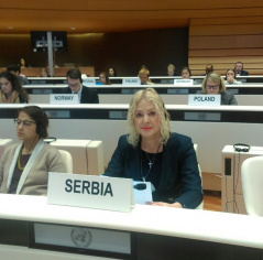 У делу Форума који се односио на питање суочавања парламената са глобалним изазовима по људска права, говорила је о мигрантској кризи и проактивном приступу и напорима које је Србија учинила како би били испуњени сви стандарди у погледу заштите миграната. У последњој сесији која се односила на повећање укључености парламената у међународне механизме за људска права, истакла је чињеницу да је Влада Републике Србије препознала значај препорука механизама за људска права УН и образовала Савет Владе Републике Србије за праћење примене препорука механизама Уједињених нација за људска права. Такође је истакла да је Одбор за људска и мањинска права и равноправност полова Народне скупштине имао низ активности у циљу упознавања са државним извештајима о примени међународних уговора које је Србија ратификовала, поред осталих и са Универзалним периодичним прегледом и извештајем о примени Конвенције о елиминисању свих облика дискриминације жена (CEDAW), као и ради праћења примене добијених препорука надлежних тела УН.
