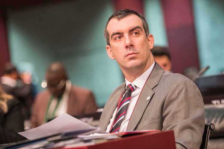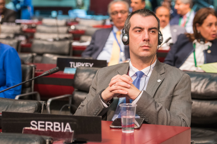 14. октобар 2019. Потпредседник Народне скупштине и члан делегације у ИПУ проф. др Владимир Маринковић на Сталном одбору за демократију и људска права 141. Скупштине ИПУ